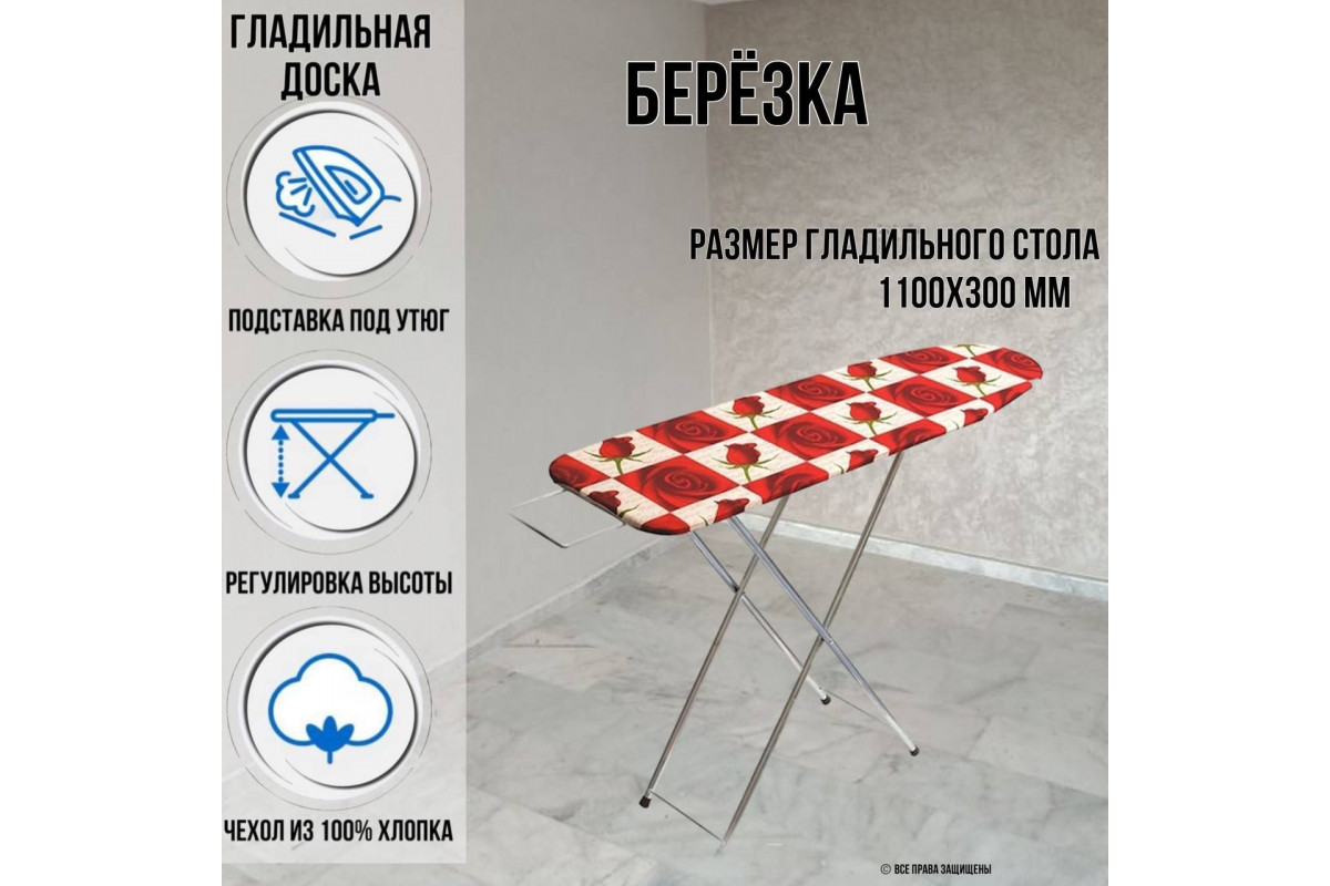 Ножки гладильной доски Березка выполнены из металла. Цвет чехла может отличаться от представленного на картинке.