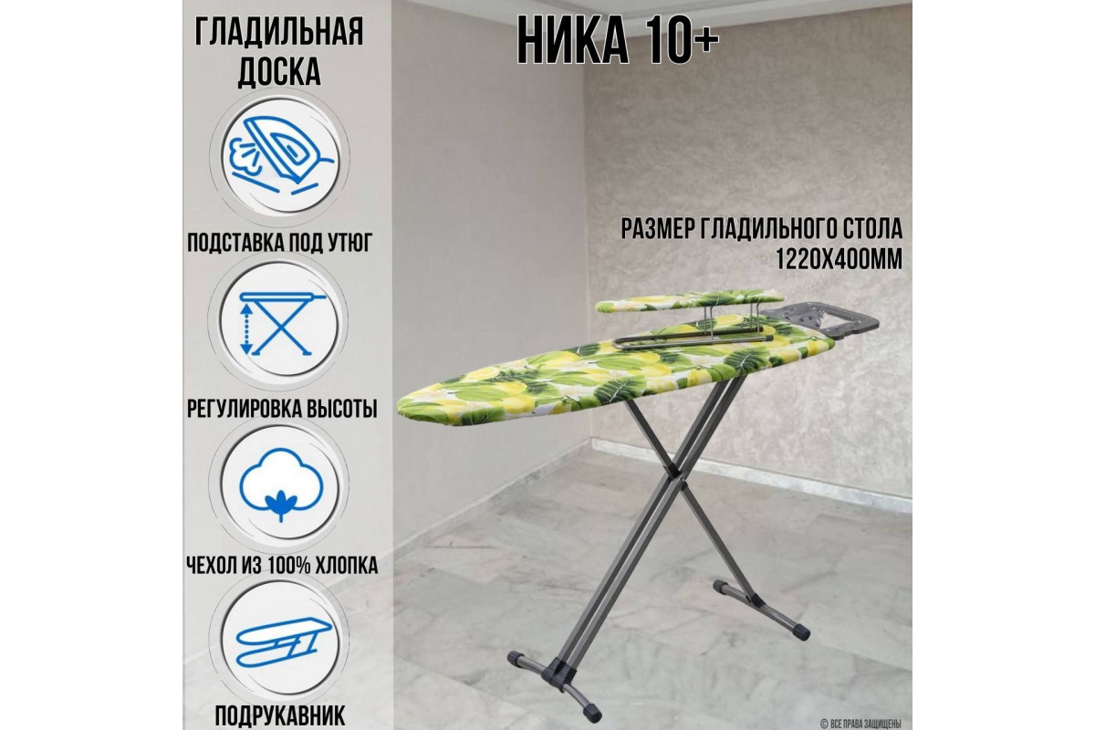 Гладильная доска напольная Ника 10+ 122х40 см, регулируемая высота до 90 см, европодставка, подрукавник, провод для утюга