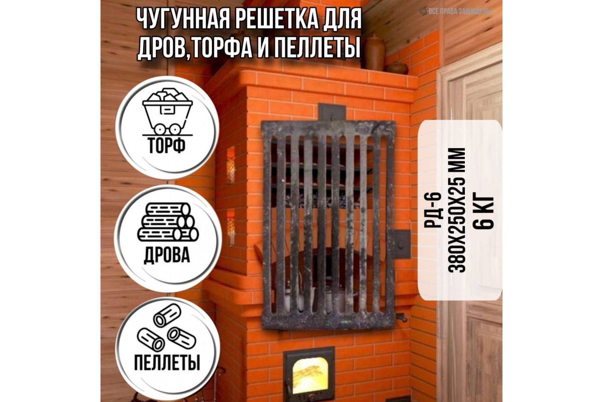 Колосник чугунный для печи РД 6 380 х 250 6кг / решетка колосниковая чугунная для дров, печное литье для отопительной,для банной печи и котла,камина