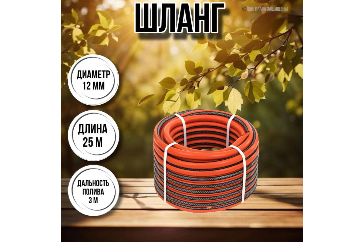 Покупка 3-х слойного шланга для полива сада - отличное вложение в уход за растениями и участком. Он поможет вам сэкономить время и усилия при поливе и обеспечит равномерное и эффективное распределение воды на всей территории. Хорошая покупка для всех, кто ценит качество и долговечность в садовом инструменте. Шланг идеально подходит для полива цветов, овощей, деревьев и газонов в саду или на даче. Он также может использоваться для мытья машин, окон и других поверхностей благодаря возможности подключения различных насадок.