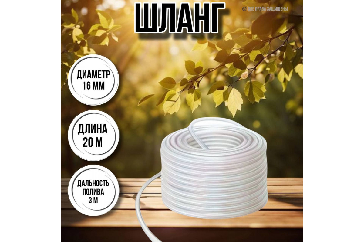 Применимость: Шланг идеально подходит для полива цветов, овощей, деревьев и газонов в саду или на даче. Он также может использоваться для мытья машин, окон и других поверхностей благодаря возможности подключения различных насадок.