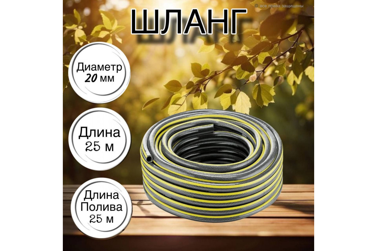 Шланг для воды / шланг поливочный садовый ПВХ, армированный, 3 / 4" 25 м