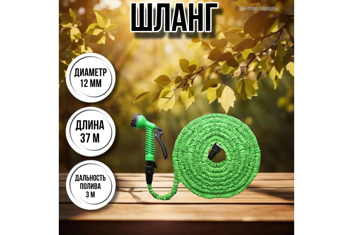 Шланг для воды / шланг поливочный садовый растягивающийся 37.5 м, пистолет и насадка на кран в комплекте