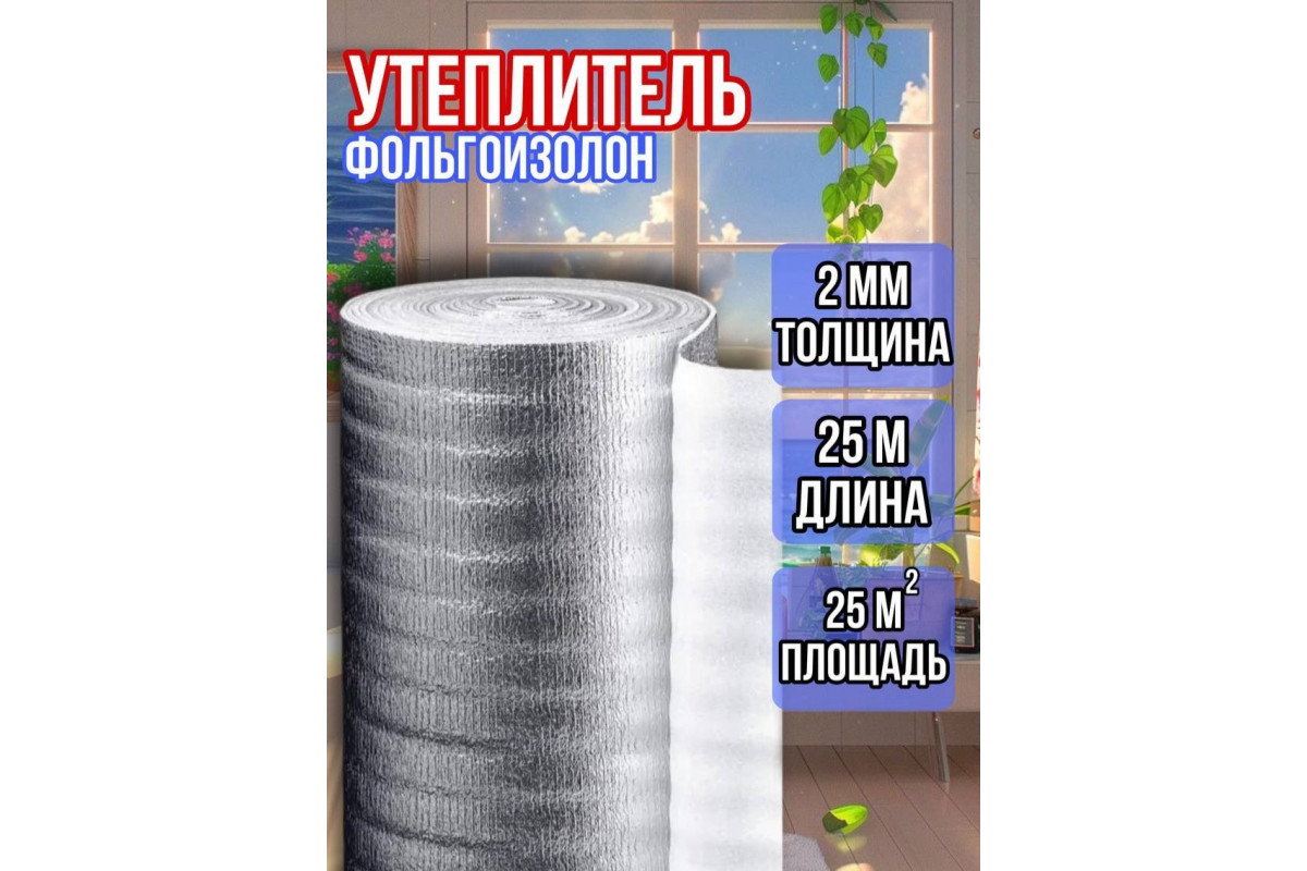 Фольгоизолон 2мм х 1м х 25м — это отражающая теплоизоляция, состоящая из пенополиэтилена и лавсаново..