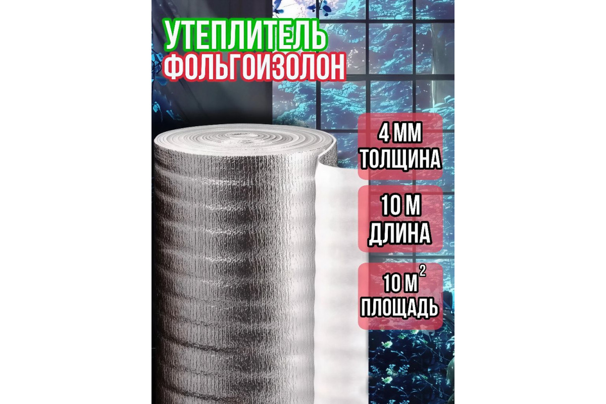 Фольгоизолон 4мм х 1м х 10м — это отражающая теплоизоляция, состоящая из пенополиэтилена и лавсановой (полиэфирной) пленки. Материал обладает высокими теплоизоляционными свойствами, обеспечивая экономию тепла в доме.