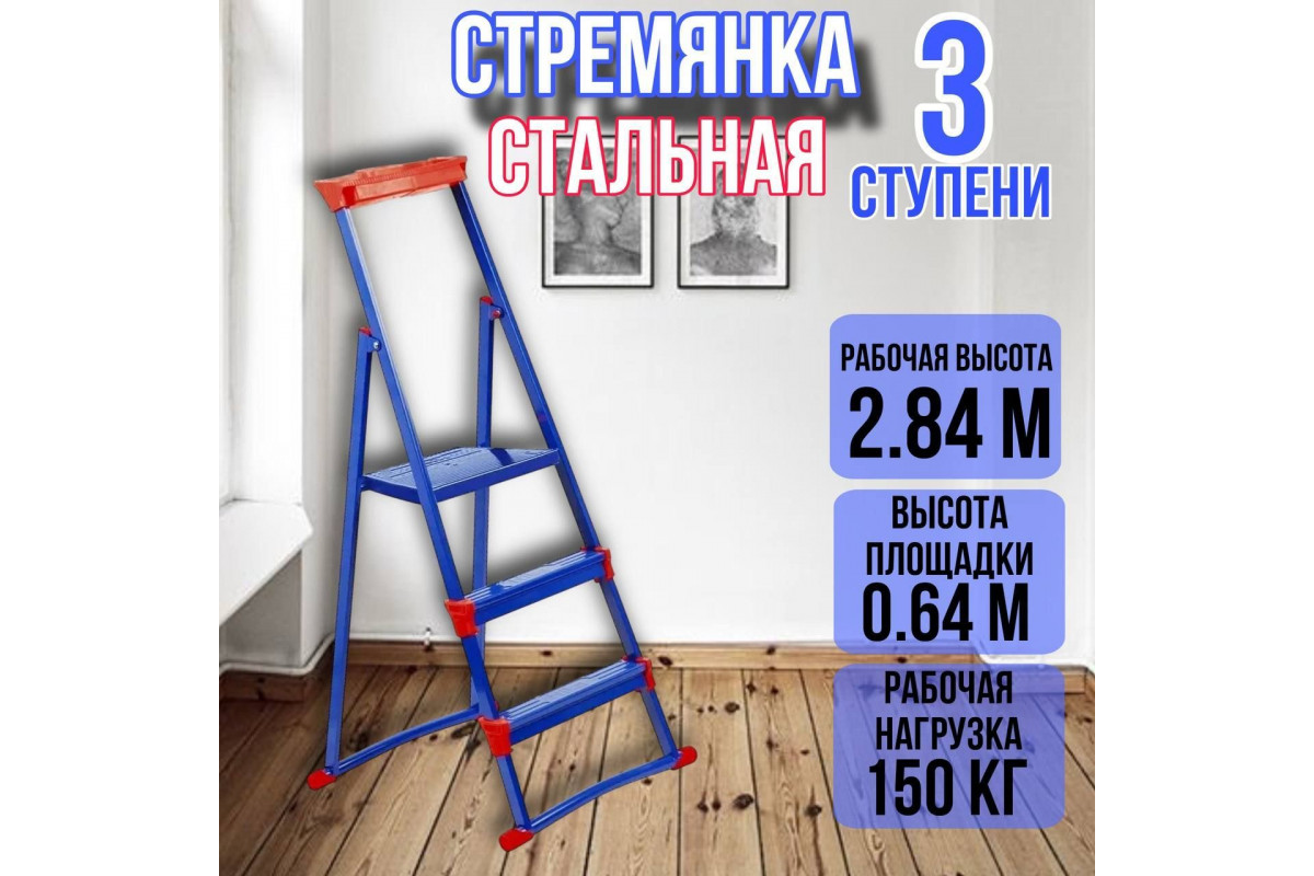 Стремянка стальная 3 широкие металлические ступени СМ3+