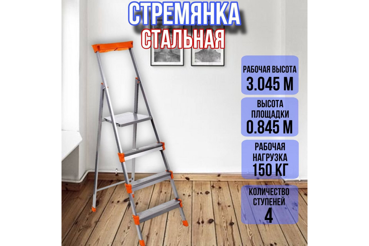 Стремянка стальная 4 широкие металлические ступени СМ4