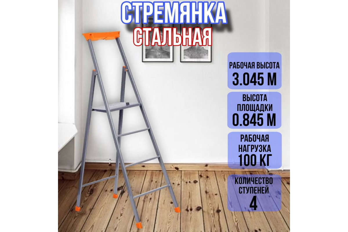 1. Высота стремянка настолько оптимально просчитана, что обеспечивает удобство и безопасность для выполнения различных задач на небольших высотах, таких как ремонтные работы, отделка, монтаж и т.д.