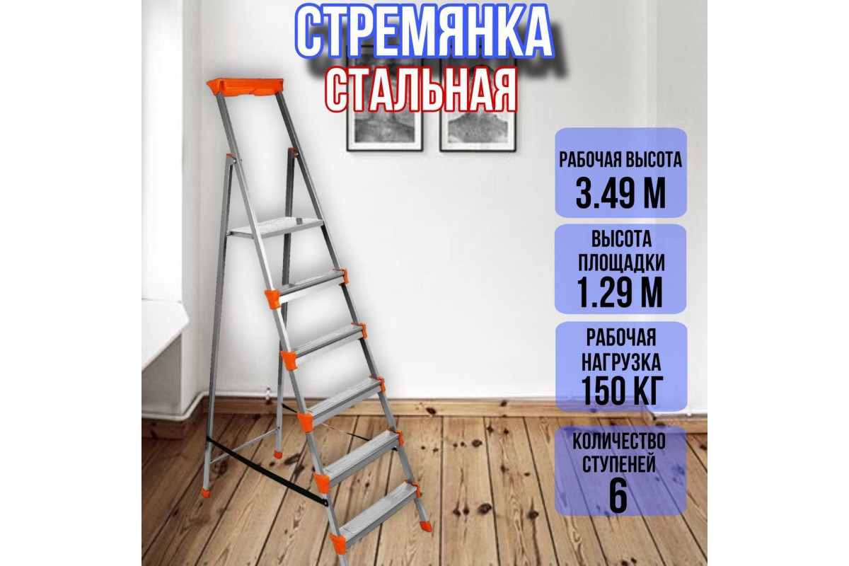 Стремянка стальная 6 широких металлических ступеней СМ6