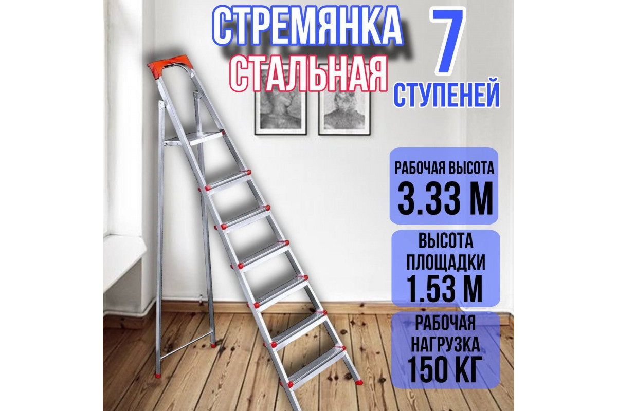 Стремянка стальная 7 широких металлических ступеней,ufuk