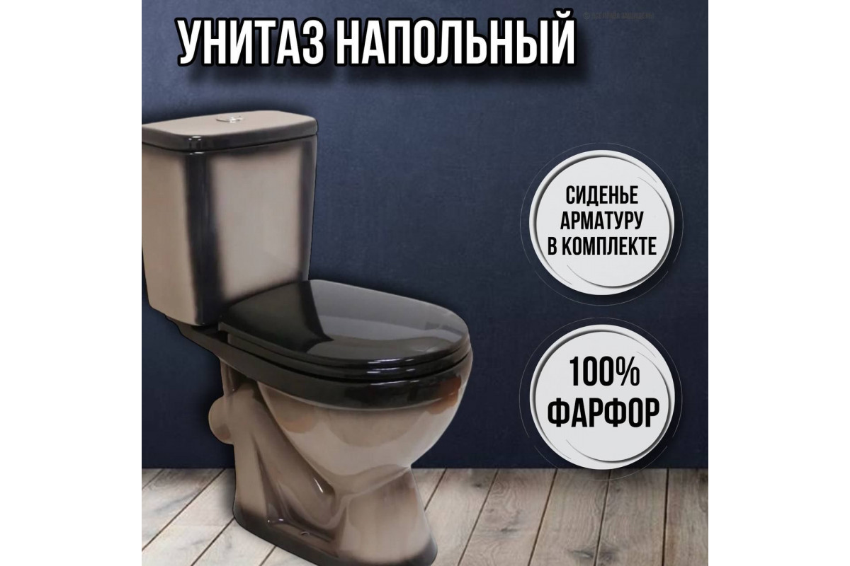 Унитаз напольный с бачком и сиденьем Лира черный декор